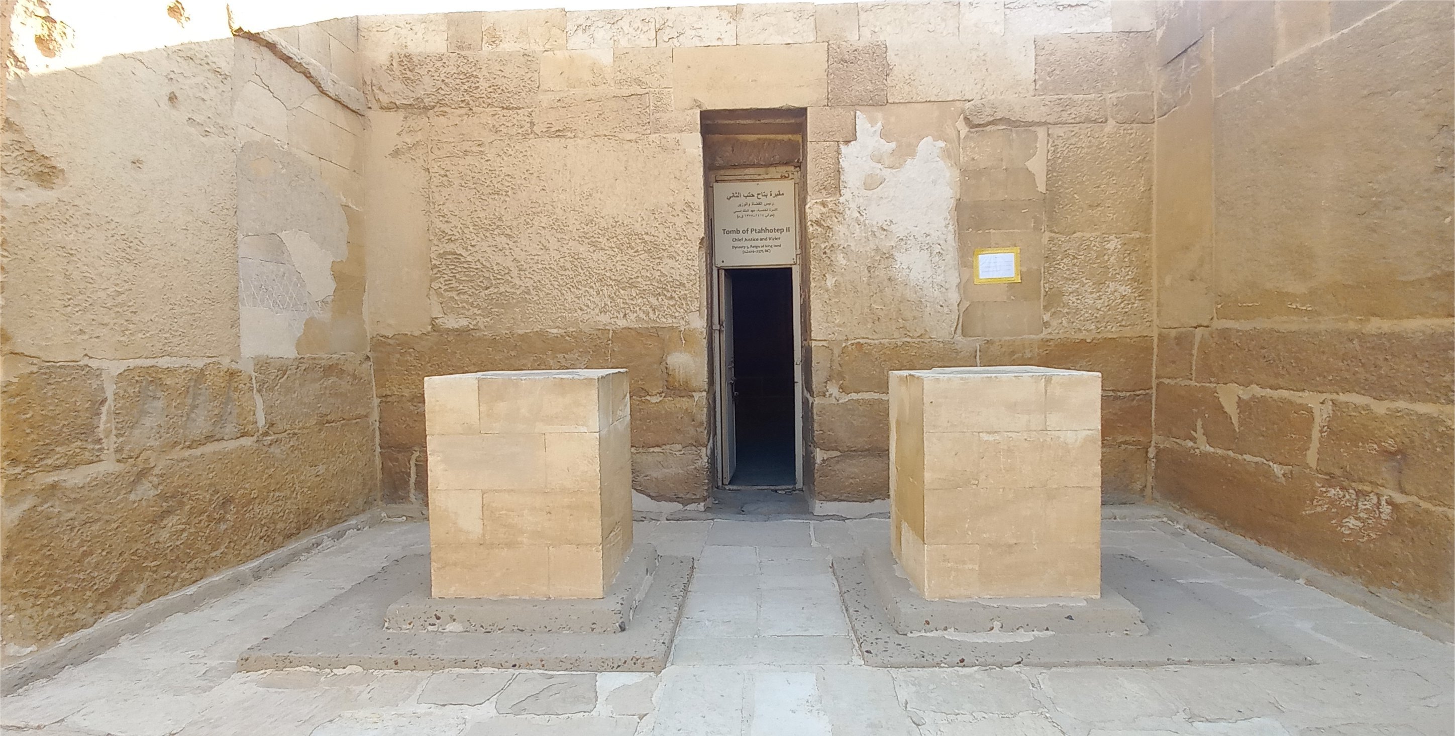 Ptahhotep partage avec son père Akhethotep (également vizir) un grand mastaba double, dont il n'occupe à vrai dire qu'une petite portion. Il persiste un petit doute sur le fait que notre Ptahhotep ait été vizir lui aussi. Le titre n'apparaît étrangement pas dans la tombe, mais on le trouve sur son sarcophage, et il est quasiment sûr qu'il a occupé la fonction.